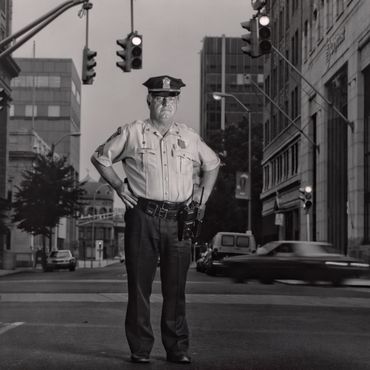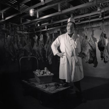 A portrait series of people with different occupations on Bridgeport, Connecticut's Main Street . . . the butcher, the barber, the bootblack, the bank president, and the newspaper "boy" who would soon celebrate his 80th birthday.